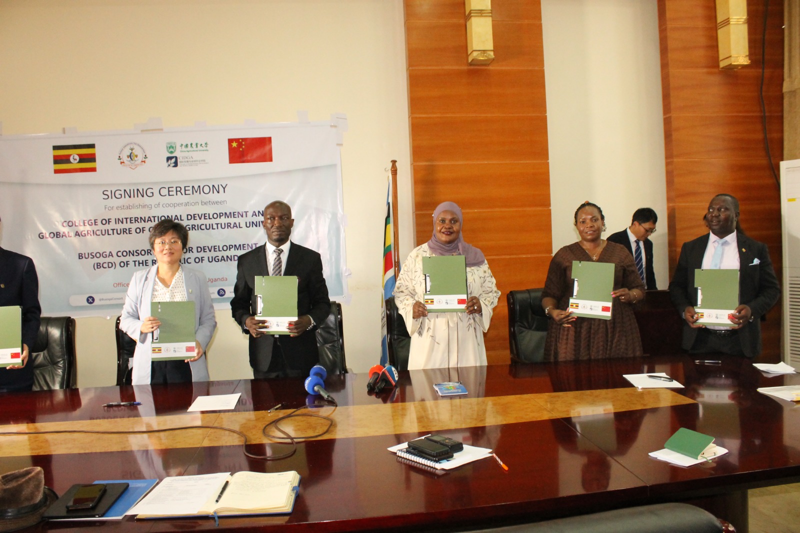Mula Anthony, the Director General the Busoga Consortium for Development (BCD) signed on behalf of BCD while Prof. Tang Lixia Deputy Dean College of International Development and Global Agriculture at the University, signed on behalf of CAU.