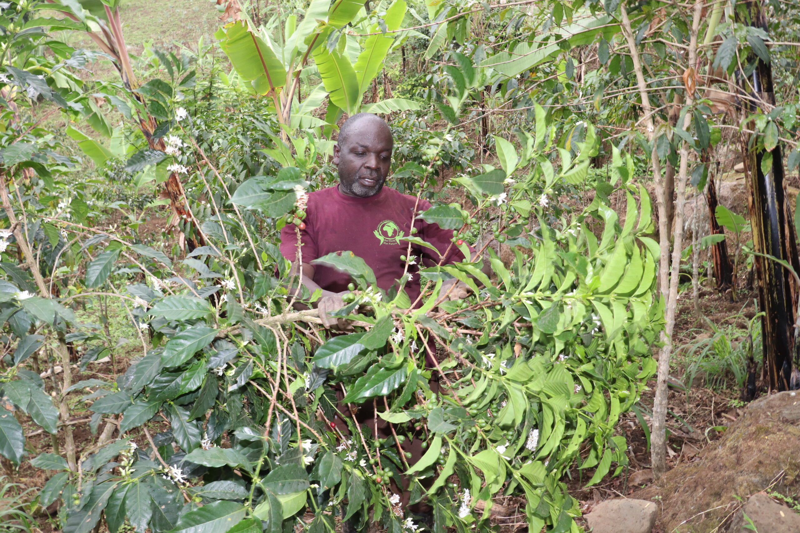 He revealed that before the training, he would just grow food crops and he would sell them hence having less food. But now he has coffee for cash as a cash crop, cows for purposely manure to his gardens and then has a banana plantation and other food crops for food.