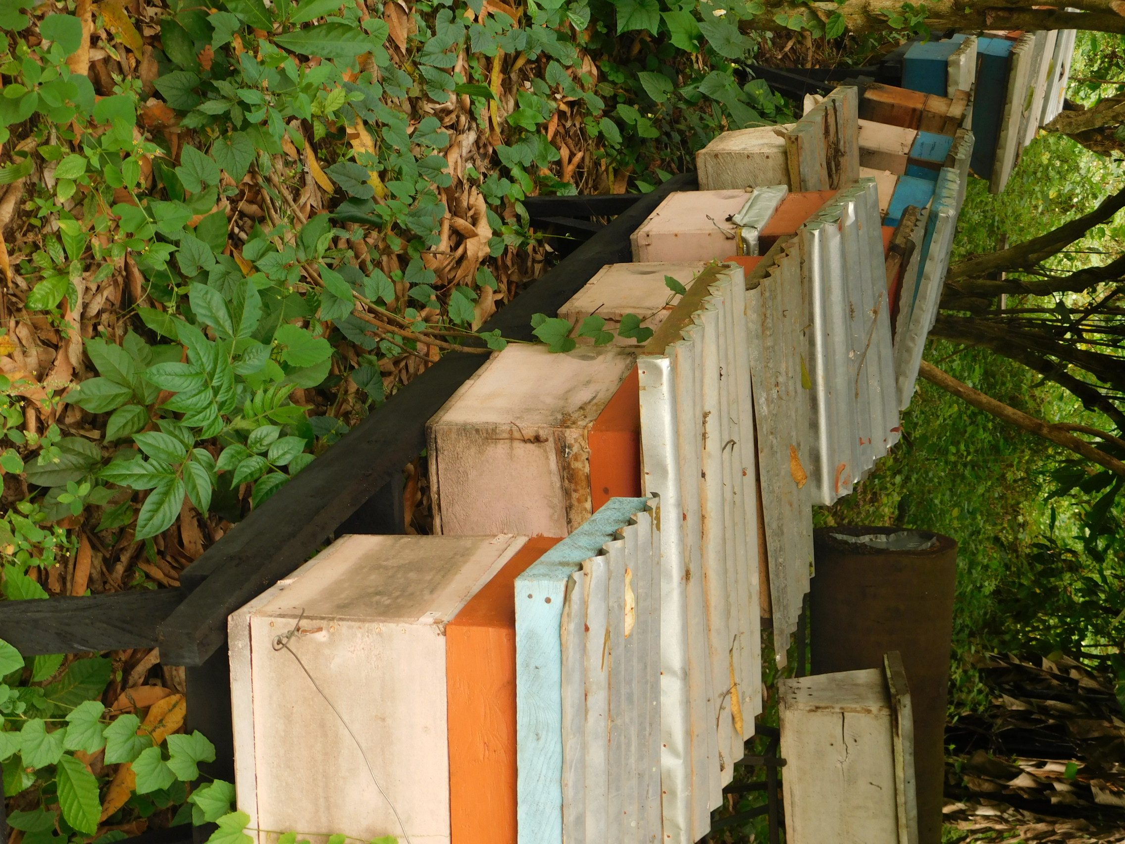 Theshade created by the large mango tree looked an obvious site for keeping bees. “We subsequently erected stands for 20 hives and set them up,” Moses Busulwa says.