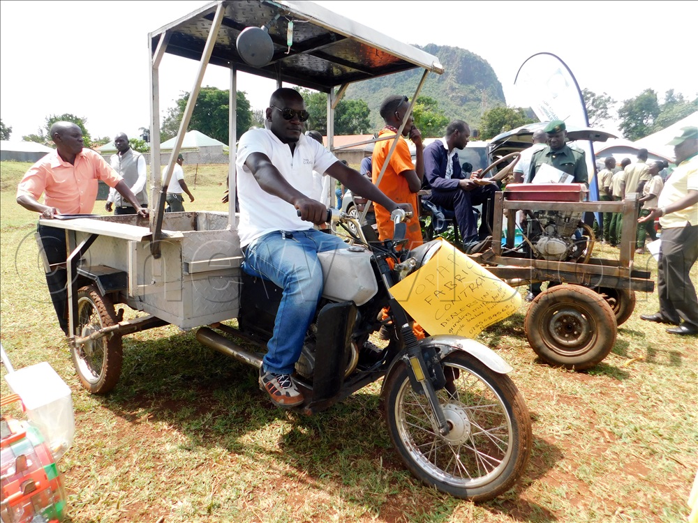 On March 3, 2023, Herbert Opapero, from Tororo district showcased a tractor he has innovated at the King George Memorial stadium.