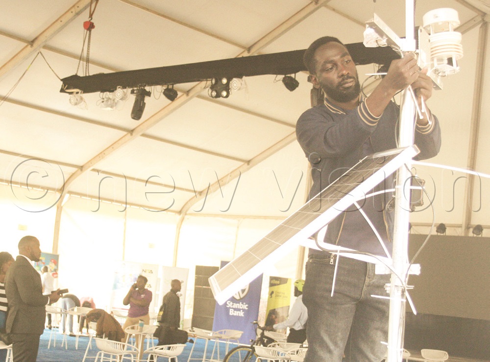 LEAD PHOTO CAPTION: Ambrose Ahurra, a support engineer at Simplifi Networks, installing gateway to collect the sensor data in a farm. Modern technology can increase farmers’ yields. (Photo by Maureen Nakatudde)