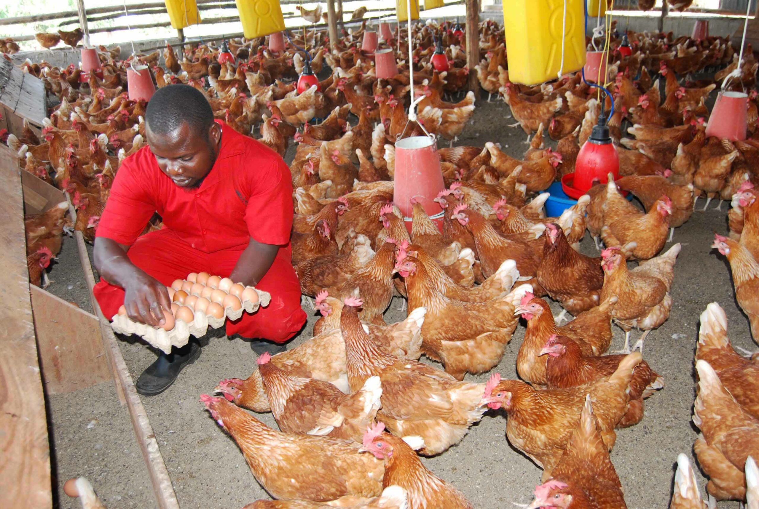 Celia Kansiime one of the best farmers collecting eggs from her chicken. Photo by Herbert Musoke