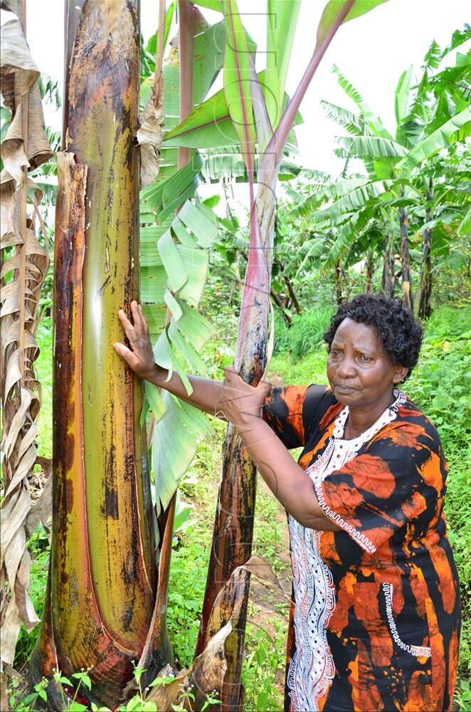 Manyiraho stresses pest management, regularly checking her plants for common banana pests like weevils and nematodes.